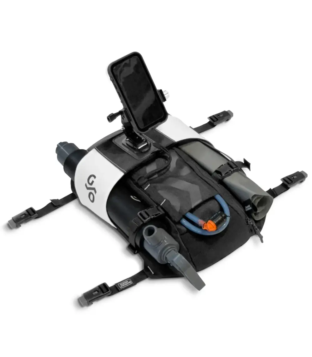 Our smoothest fetch and stash pocket for organizing paddle float & bilge pump.